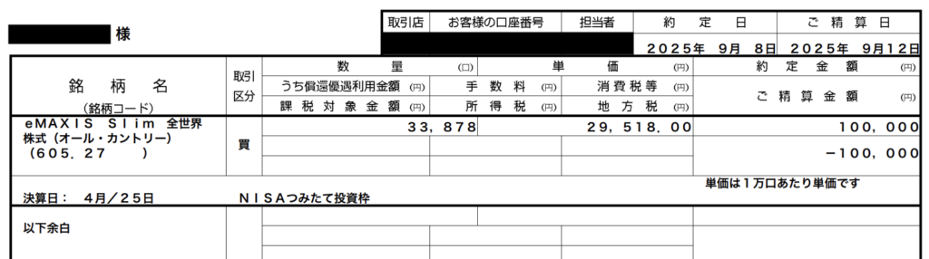 eMAXIS Slim 全世界株式(オール・カントリー)をNISAつみたて投資枠で10万円分購入しました。